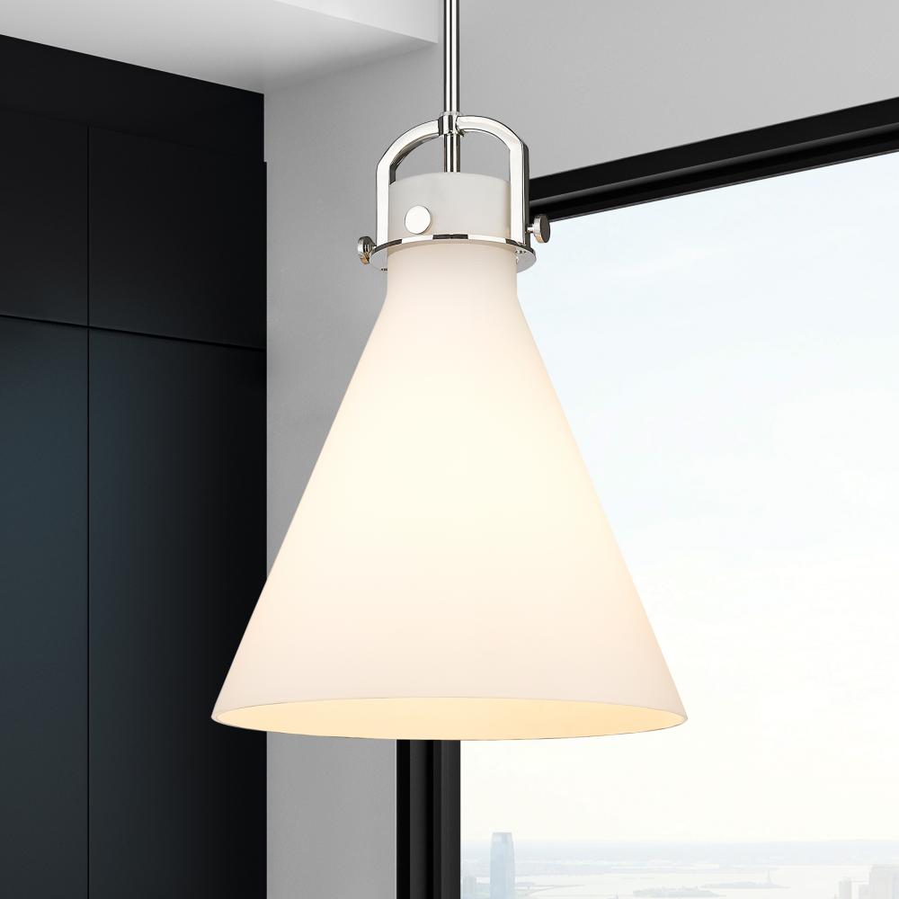 Newton Cone - 1 Light - 14 inch - Polished Nickel - White Shade - Pendant