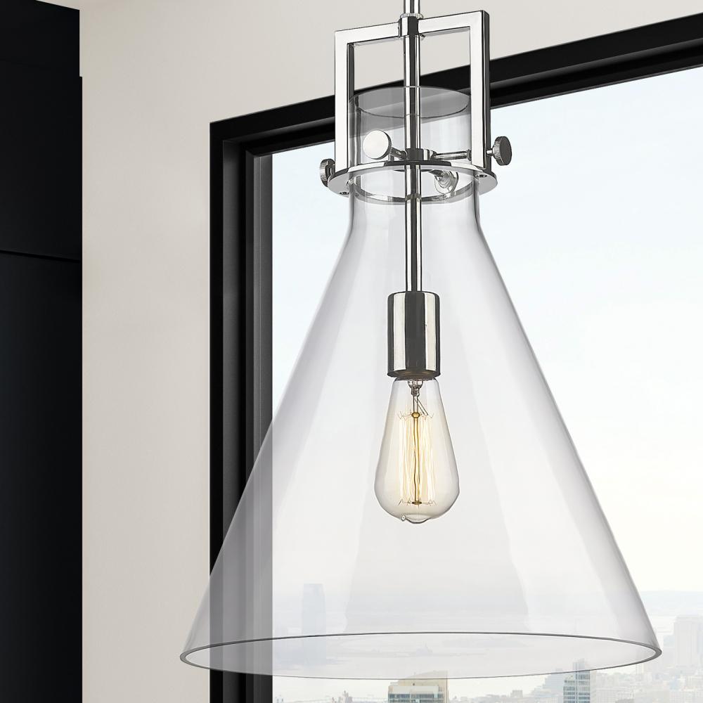 The Newton Cone is a modern industrial collection that incorporates exceptional architectural details and an equally striking cone shaped shade. The geometric shape of the glass or metal shade give this collection a charming and timeless presence. For a ki