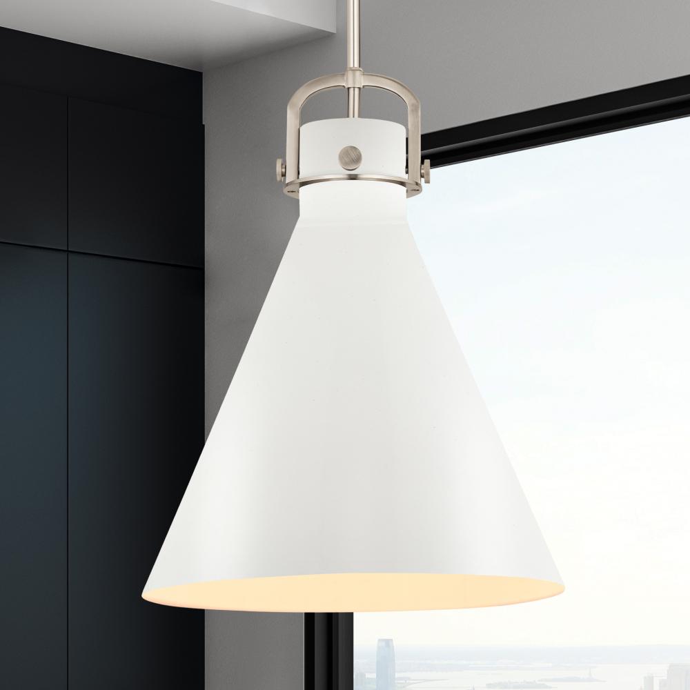 Newton Cone - 1 Light - 16 inch - Satin Nickel - Matte White Shade - Pendant