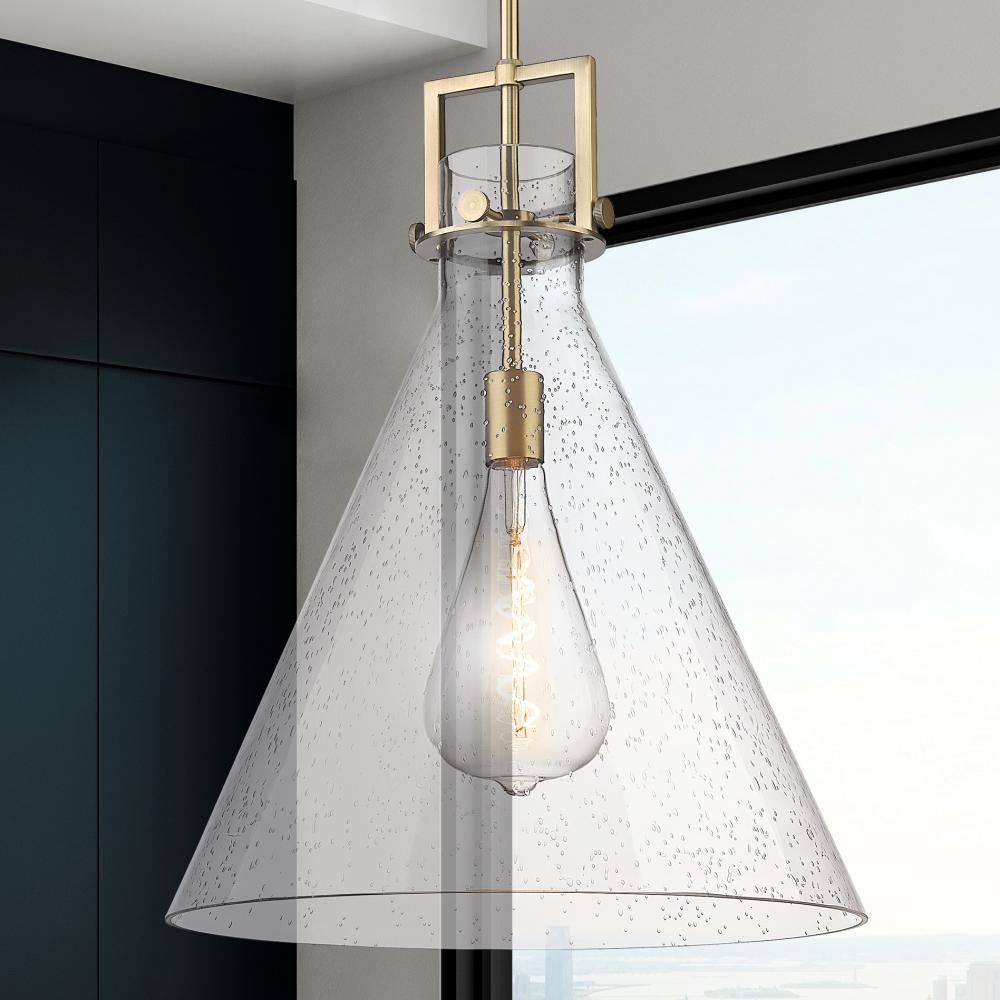 The Newton Cone is a modern industrial collection that incorporates exceptional architectural details and an equally striking cone shaped shade. The geometric shape of the glass or metal shade give this collection a charming and timeless presence. For a ki