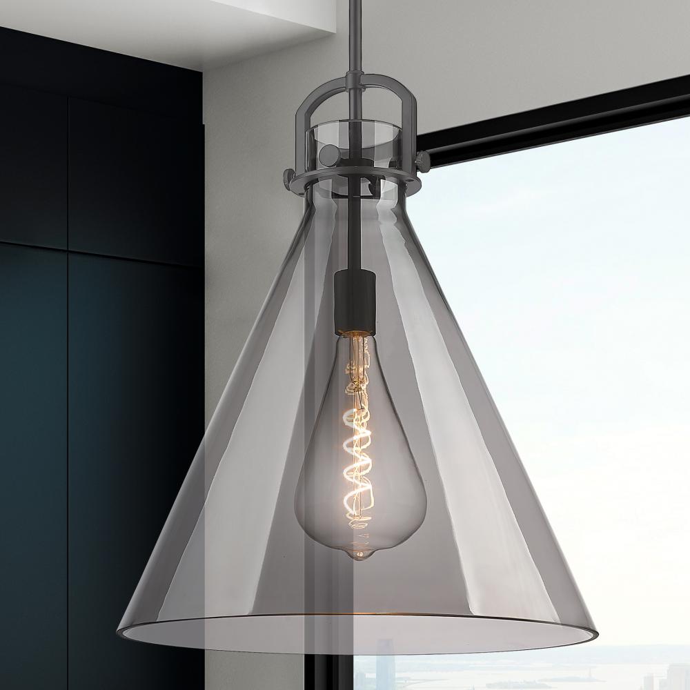 Newton Cone - 1 Light - 18 inch - Matte Black - Light Smoke Shade - Pendant