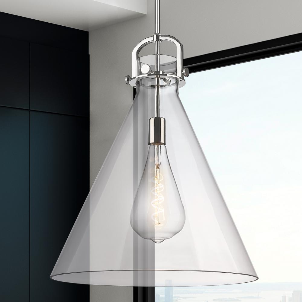 Newton Cone - 1 Light - 18 inch - Polished Nickel - Clear Shade - Pendant
