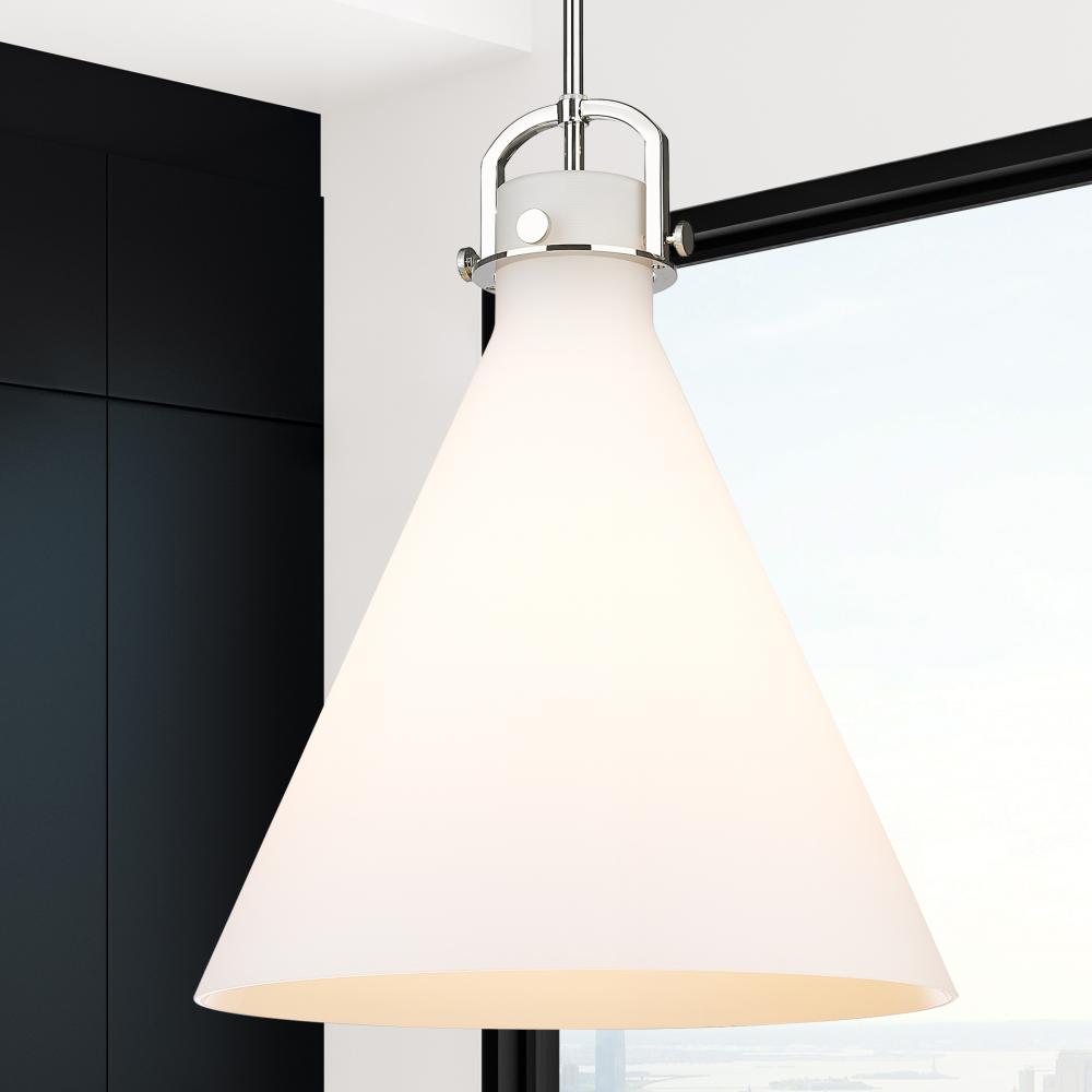 Newton Cone - 1 Light - 18 inch - Polished Nickel - White Shade - Pendant
