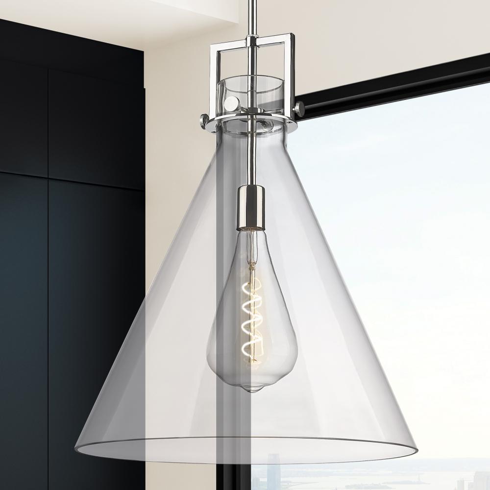 The Newton Cone is a modern industrial collection that incorporates exceptional architectural details and an equally striking cone shaped shade. The geometric shape of the glass or metal shade give this collection a charming and timeless presence. For a ki