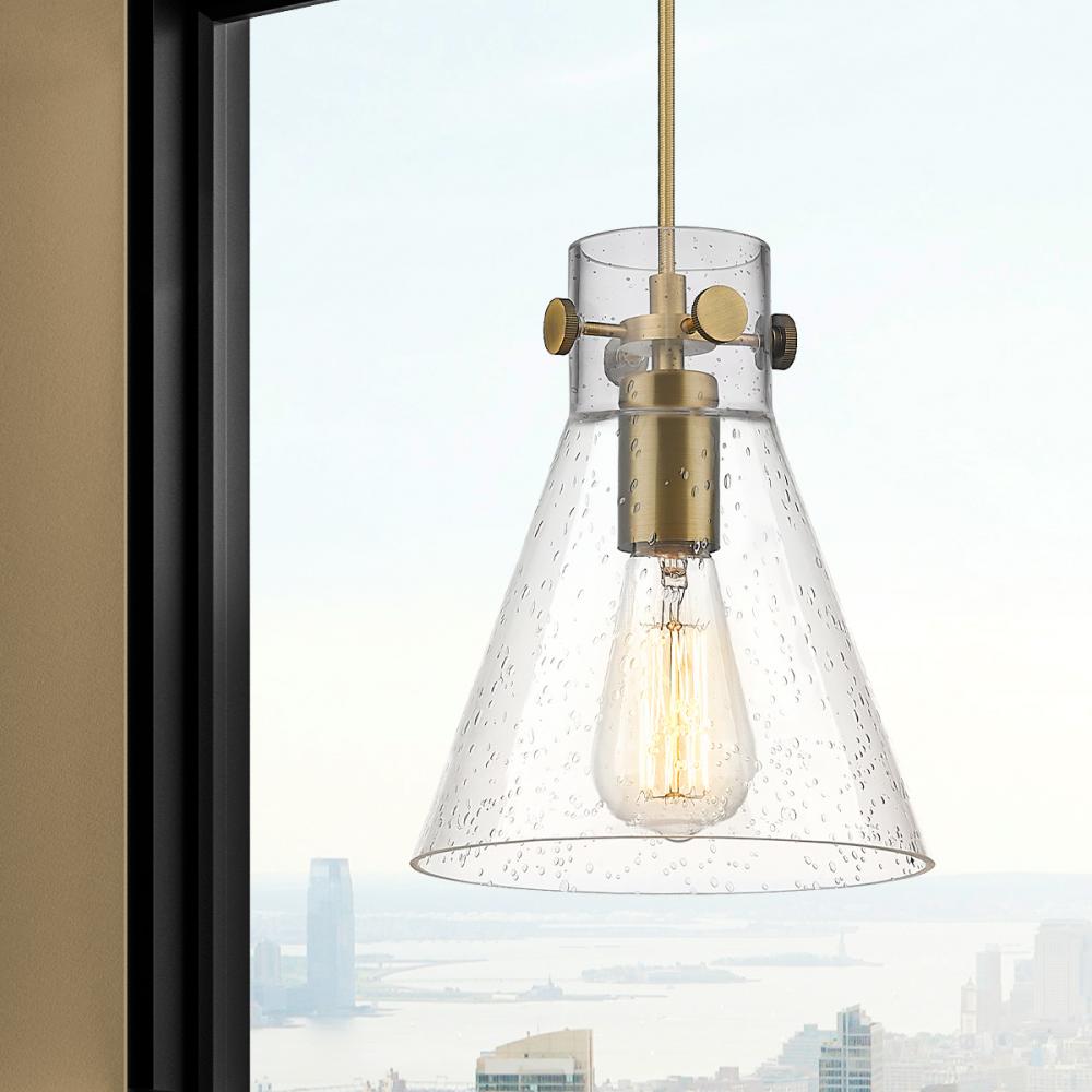 Newton Cone - 1 Light - 8 inch - Brushed Brass - Seedy Shade - Cord hung - Pendant