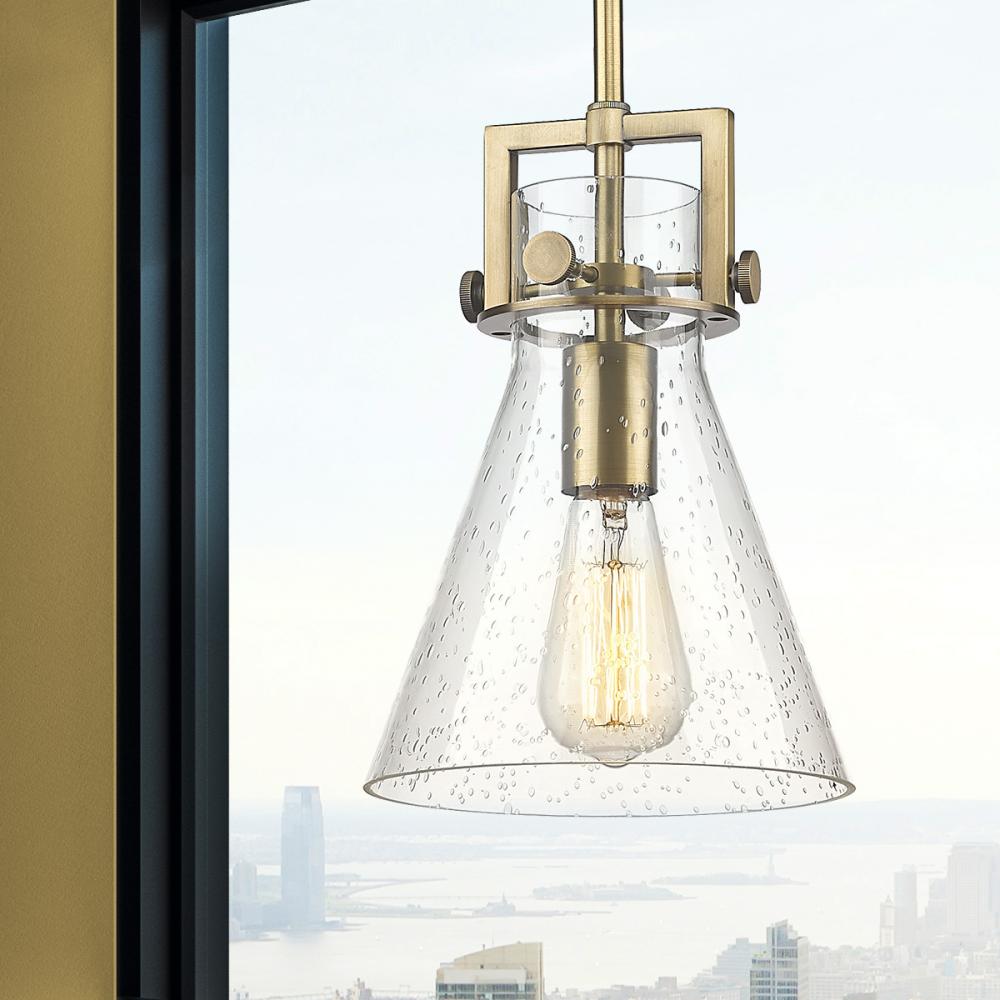 Newton Cone - 1 Light - 8 inch - Brushed Brass - Seedy Shade - Mini Pendant