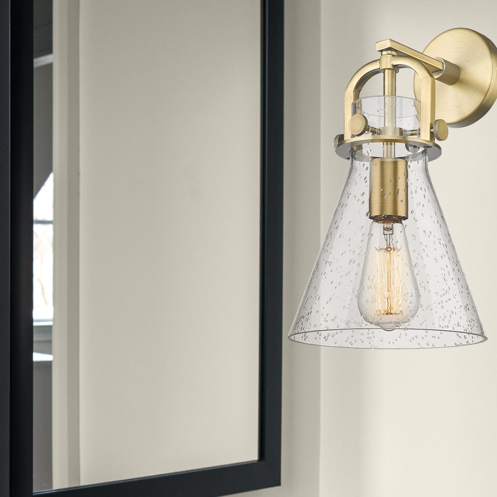 Newton Cone - 1 Light - 8 inch - Brushed Brass - Seedy Shade - Sconce
