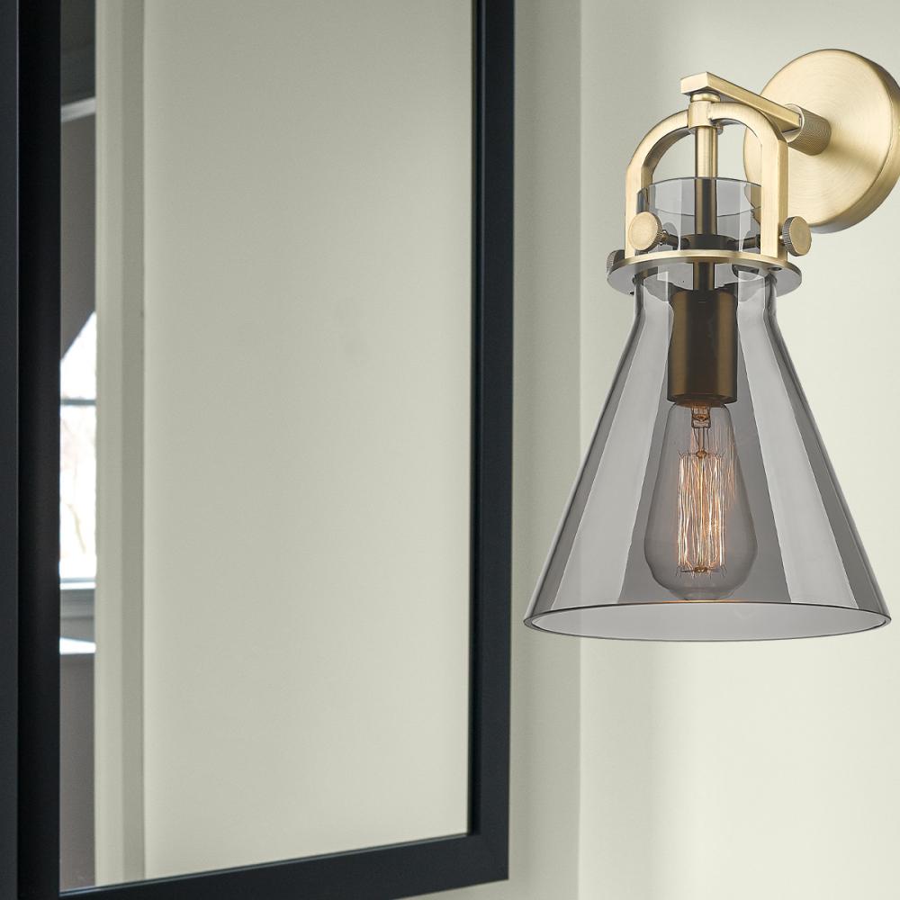 Newton Cone - 1 Light - 8 inch - Brushed Brass - Light Smoke Shade - Sconce