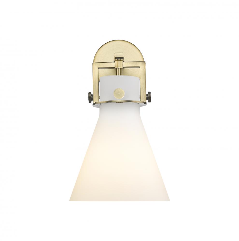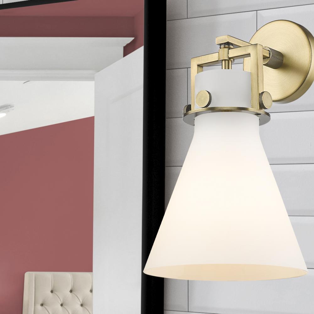Newton Cone - 1 Light - 8 inch - Brushed Brass - White Shade - Sconce