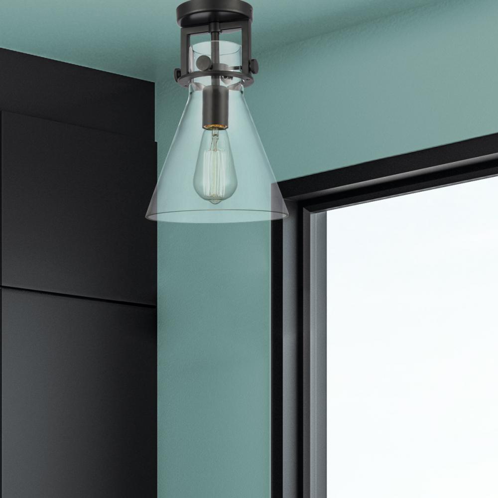 Newton Cone - 1 Light - 8 inch - Matte Black - Clear Shade - Semi-Flush Mount