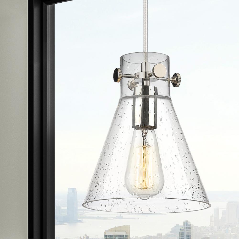 Newton Cone - 1 Light - 8 inch - Polished Nickel - Seedy Shade - Cord hung - Pendant