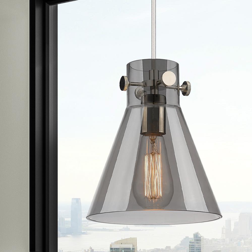 Newton Cone - 1 Light - 8 inch - Polished Nickel - Light Smoke Shade - Cord hung - Pendant