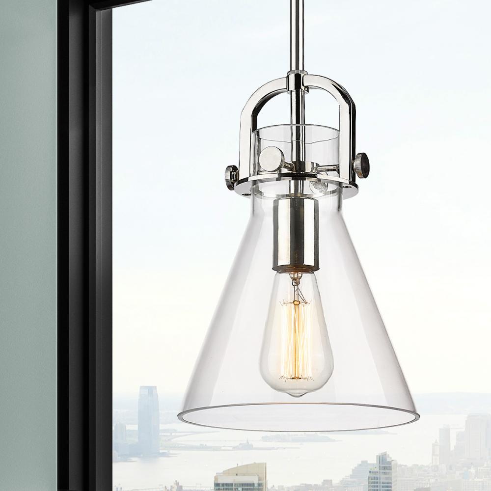 Newton Cone - 1 Light - 8 inch - Polished Nickel - Clear Shade - Mini Pendant