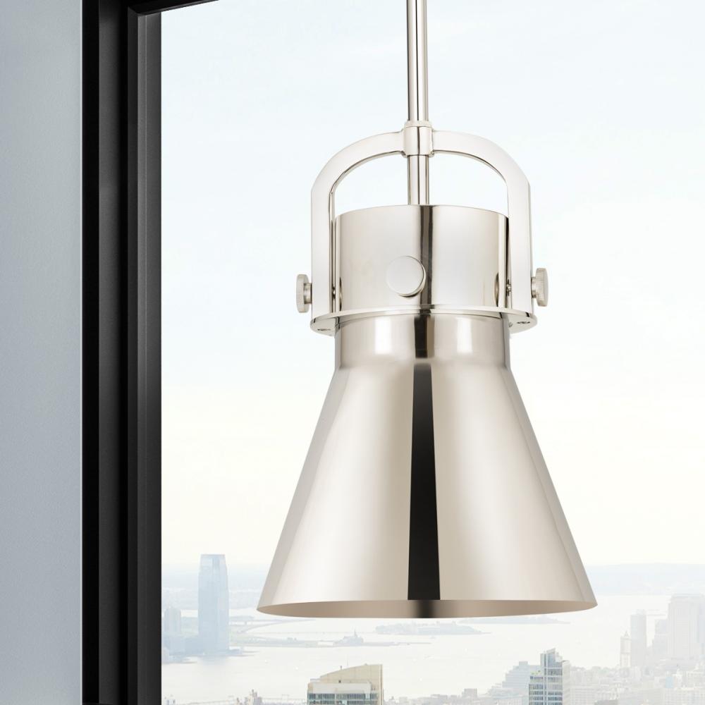 Newton Cone - 1 Light - 8 inch - Polished Nickel - Polished Nickel Shade - Mini Pendant