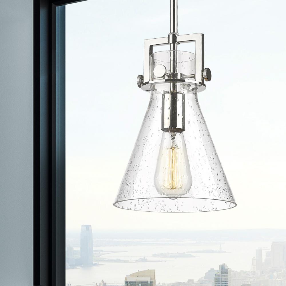 Newton Cone - 1 Light - 8 inch - Polished Nickel - Seedy Shade - Mini Pendant