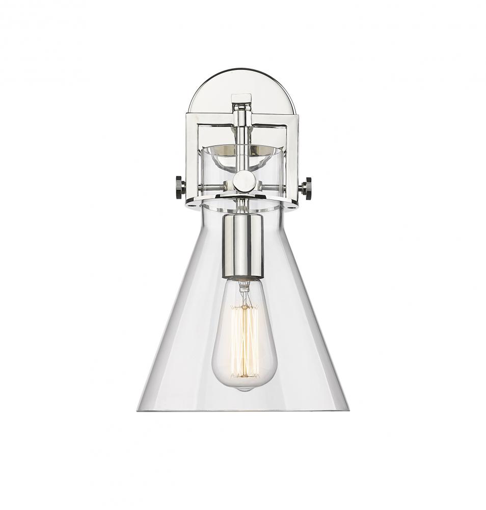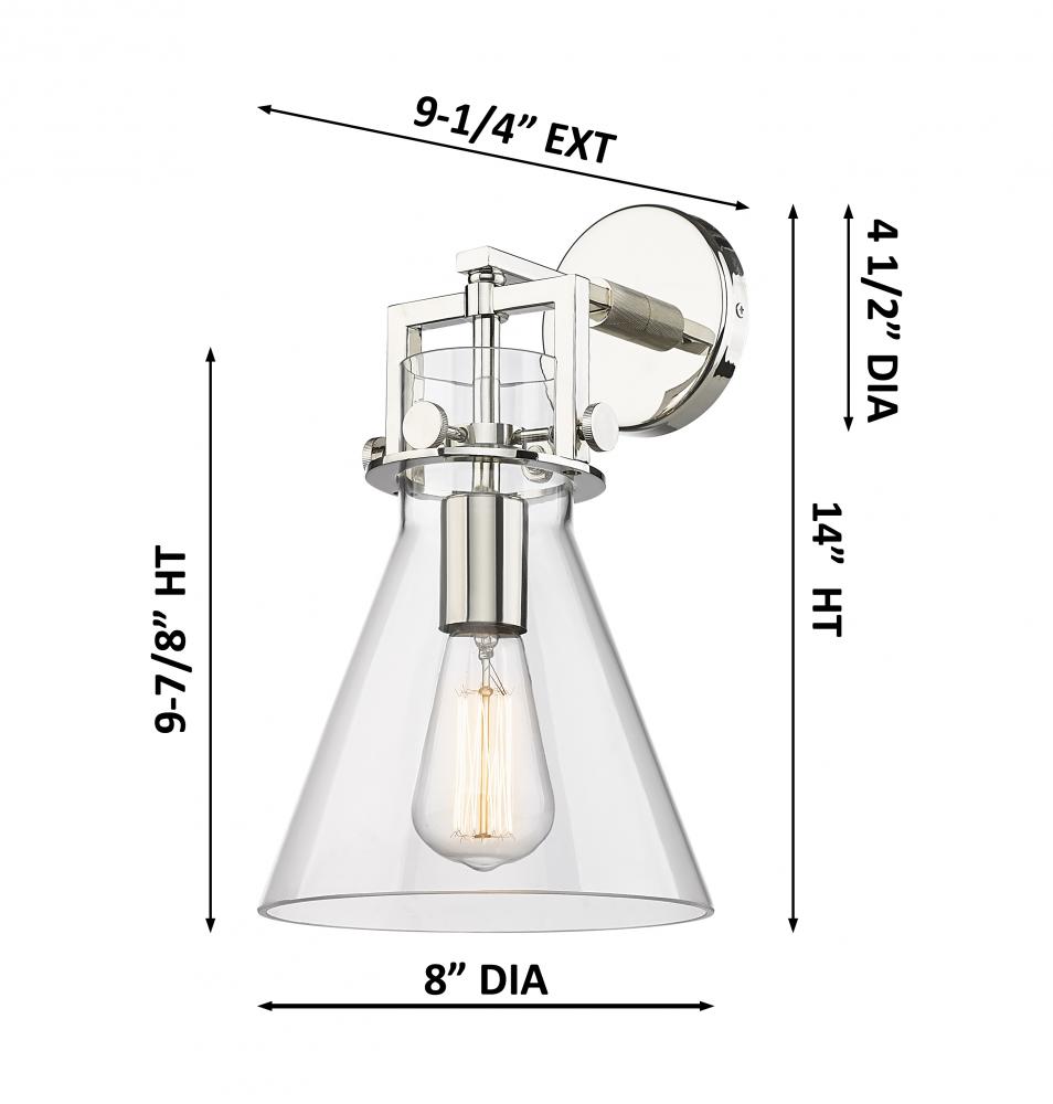 Newton Cone - 1 Light - 8 inch - Polished Nickel - Clear Shade - Sconce