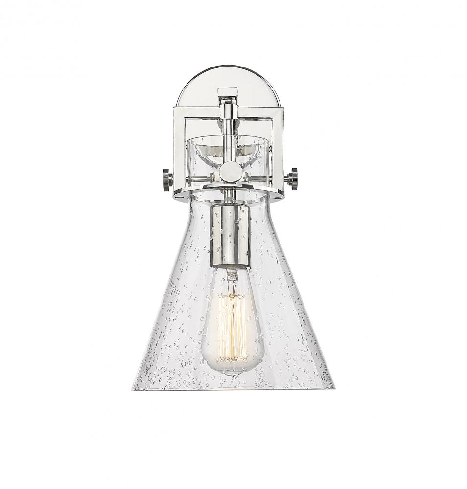 Newton Cone - 1 Light - 8 inch - Polished Nickel - Seedy Shade - Sconce