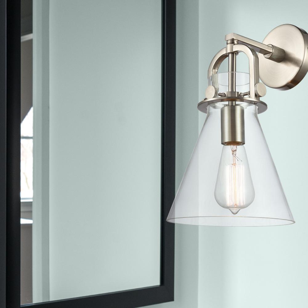Newton Cone - 1 Light - 8 inch - Satin Nickel - Clear Shade - Sconce