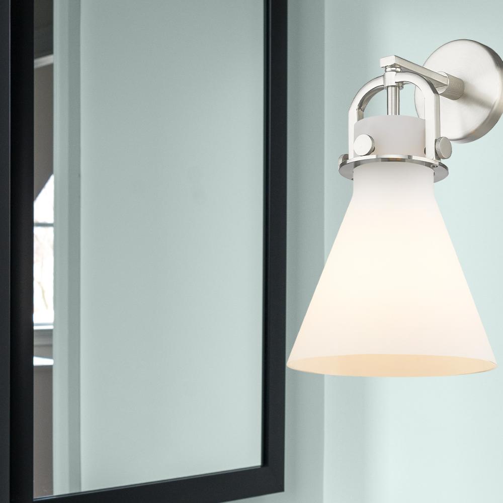 Newton Cone - 1 Light - 8 inch - Satin Nickel - White Shade - Sconce