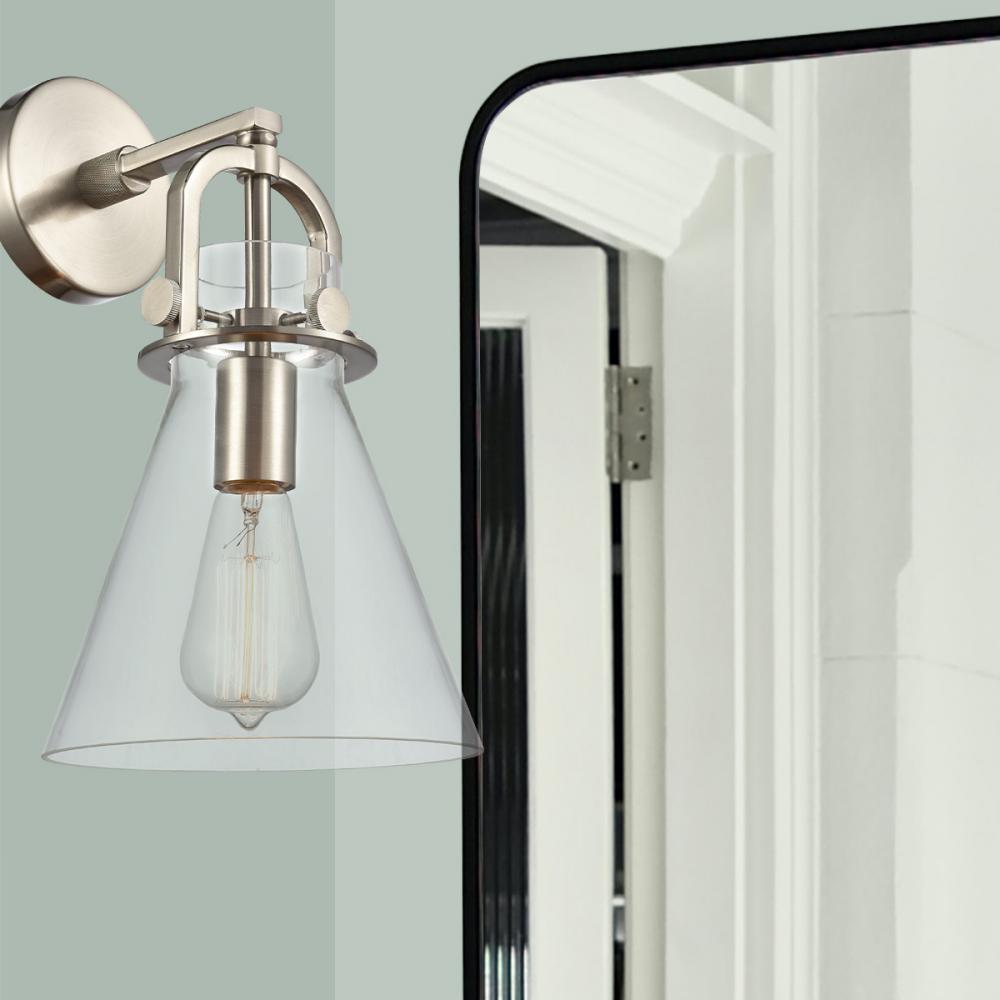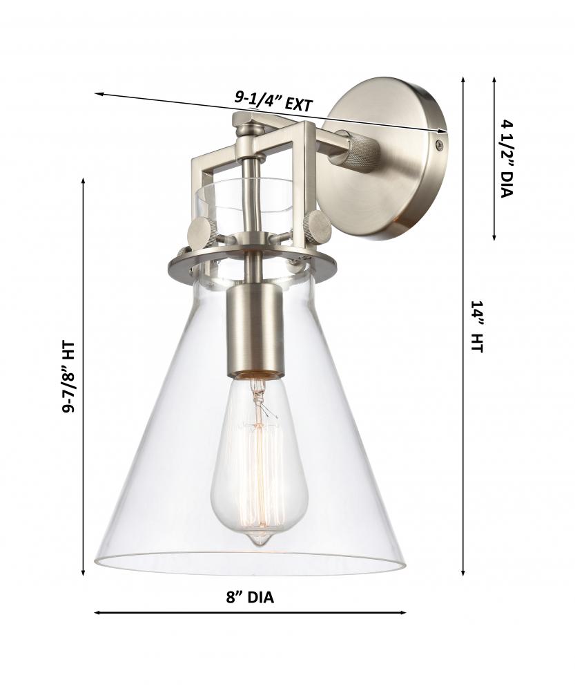Newton Cone - 1 Light - 8 inch - Satin Nickel - Clear Shade - Sconce