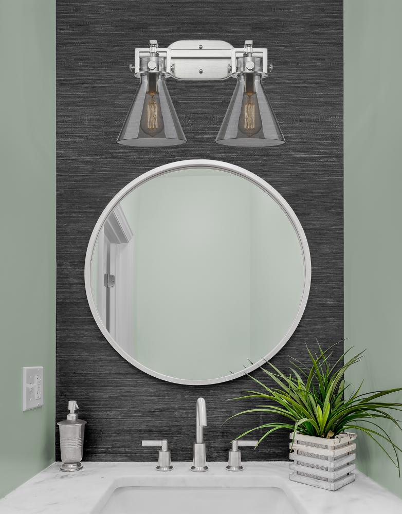 Newton Cone - 2 Light - 17 inch - Brushed Satin Nickel - Light Smoke Shade - Bath Vanity Light