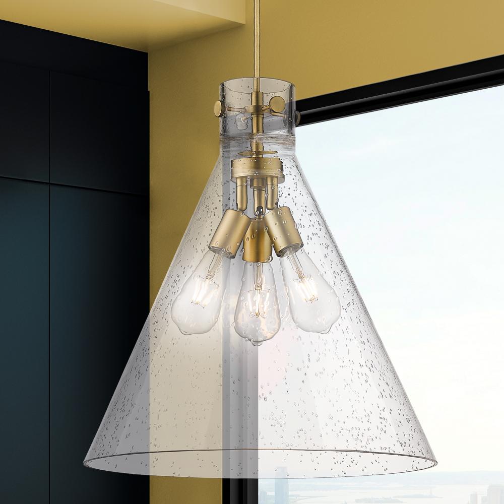Newton Cone - 3 Light - 18 inch - Brushed Brass - Seedy Shade - Cord hung - Pendant