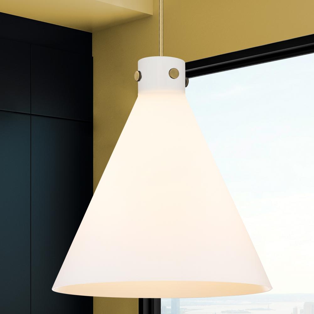 Newton Cone - 3 Light - 18 inch - Brushed Brass - White Shade - Cord hung - Pendant