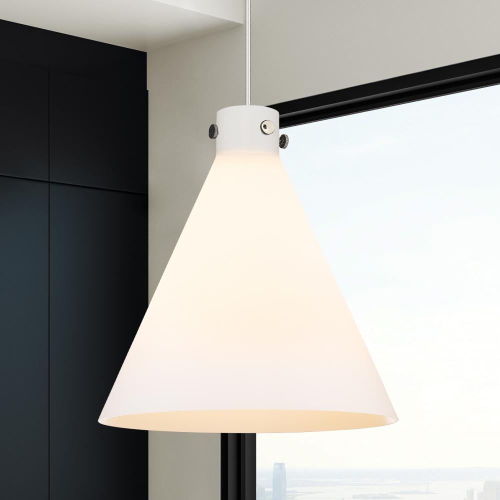 Newton Cone - 3 Light - 18 inch - Polished Nickel - White Shade - Cord hung - Pendant