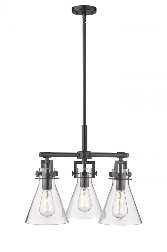 Newton Cone - 3 Light - 21 inch - Matte Black - Clear Shade - Pendant
