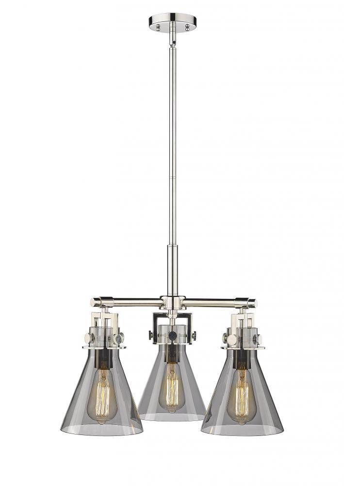 Newton Cone - 3 Light - 21 inch - Polished Nickel - Light Smoke Shade - Pendant