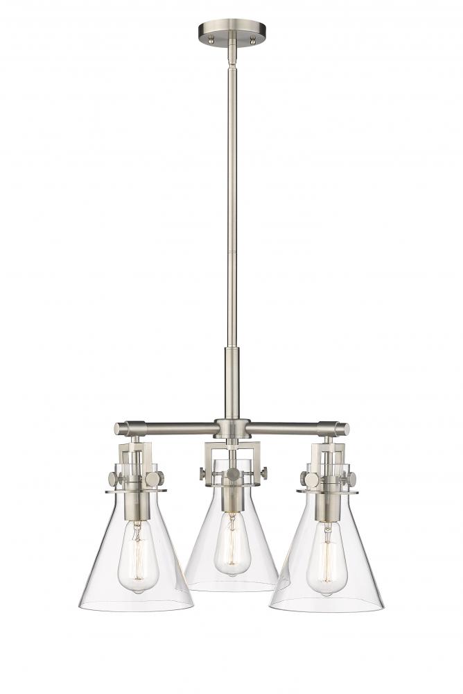 Newton Cone - 3 Light - 21 inch - Satin Nickel - Clear Shade - Pendant