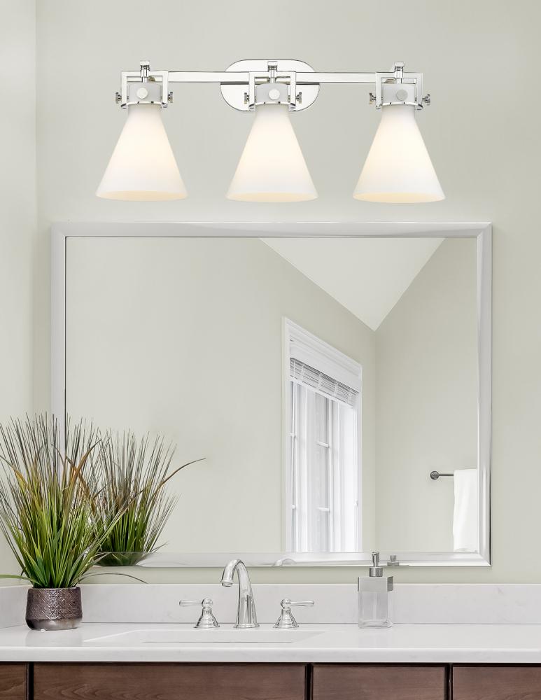 Newton Cone - 3 Light - 27 inch - Polished Nickel - White Shade - Bath Vanity Light