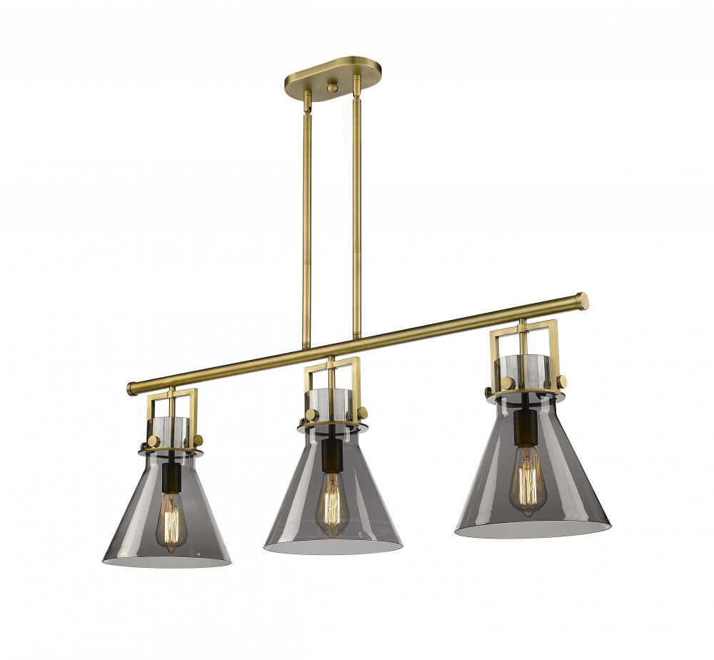 Newton Cone - 3 Light - 42 inch - Brushed Brass - Light Smoke Shade - Island Light