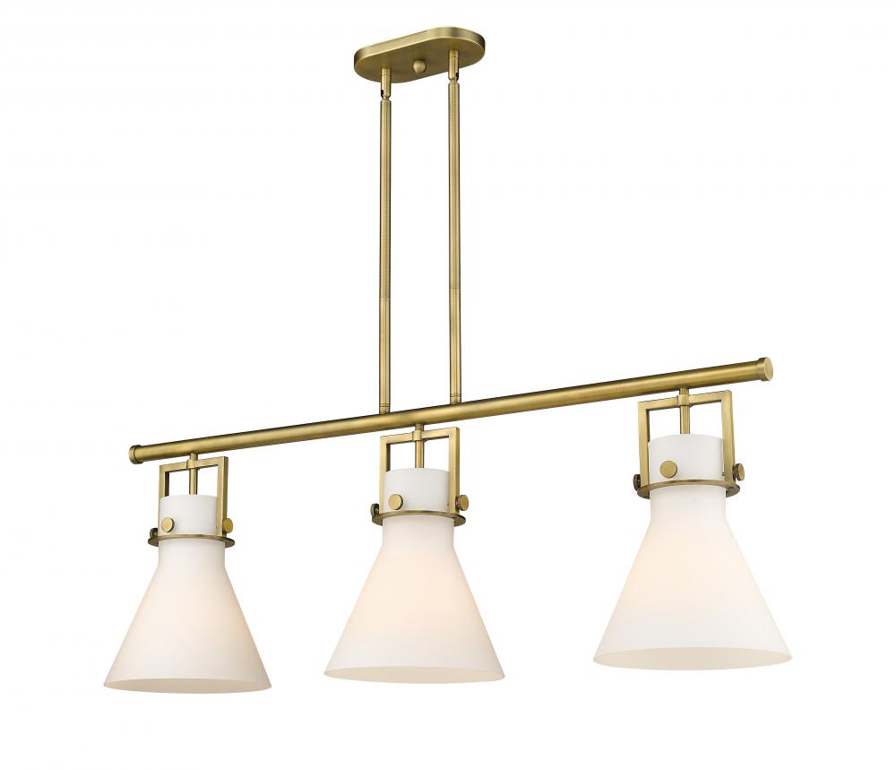 Newton Cone - 3 Light - 42 inch - Brushed Brass - White Shade - Island Light