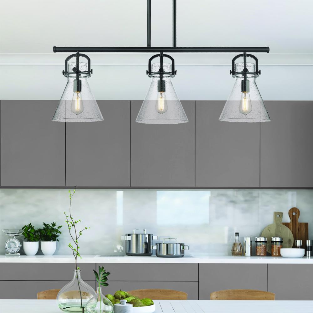Newton Cone - 3 Light - 42 inch - Matte Black - Seedy Shade - Island Light