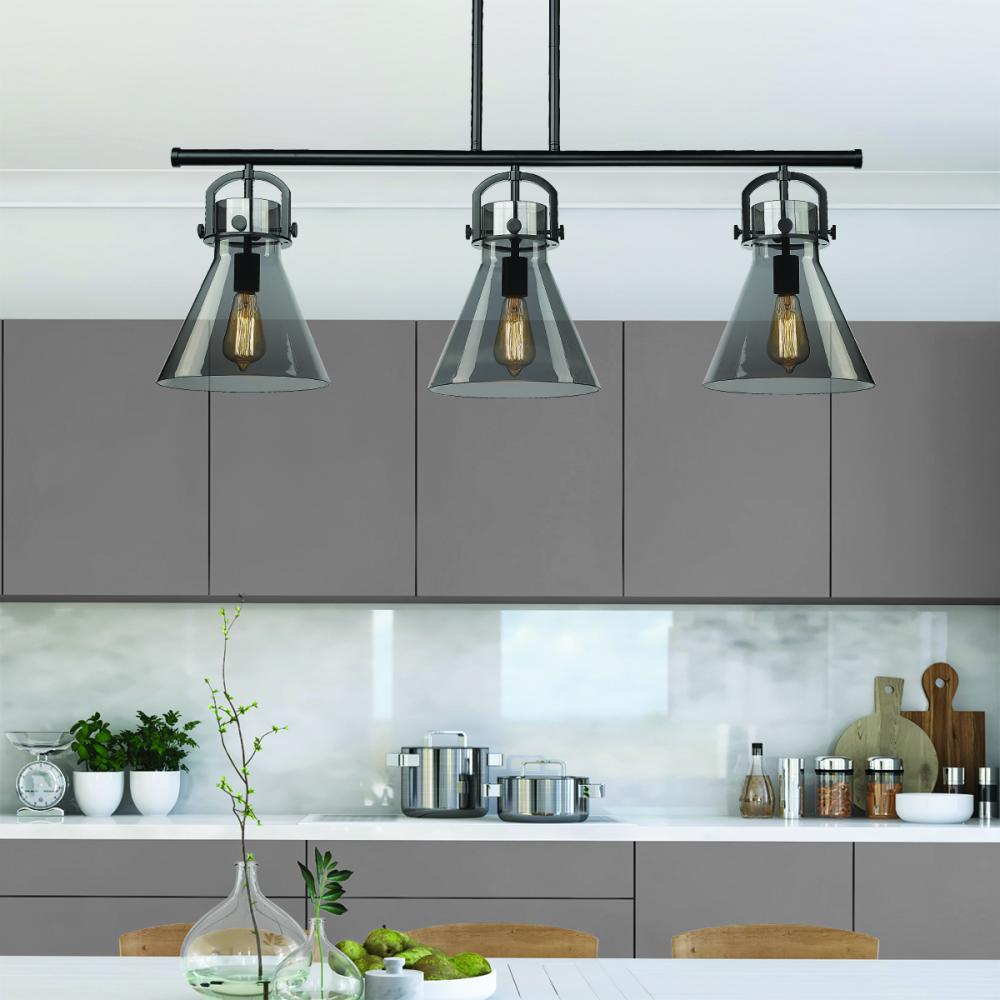Newton Cone - 3 Light - 42 inch - Matte Black - Light Smoke Shade - Island Light