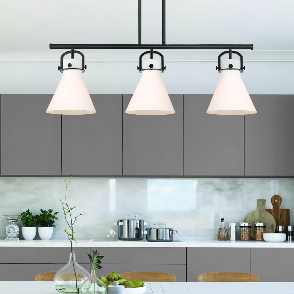 Newton Cone - 3 Light - 42 inch - Matte Black - White Shade - Island Light