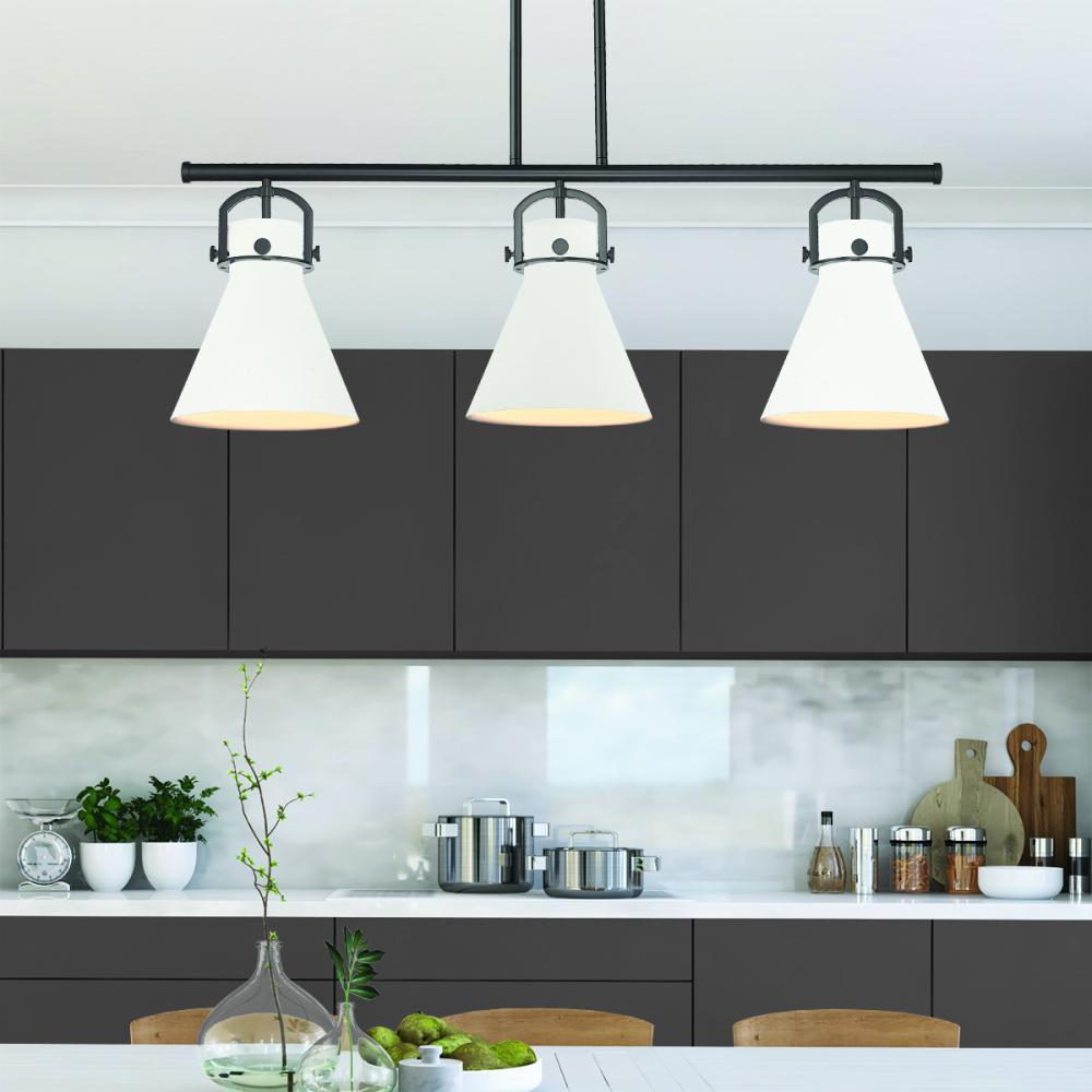 Newton Cone - 3 Light - 42 inch - Matte Black - Matte White Shade - Island Light