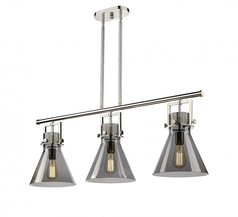 Newton Cone - 3 Light - 42 inch - Polished Nickel - Light Smoke Shade - Island Light