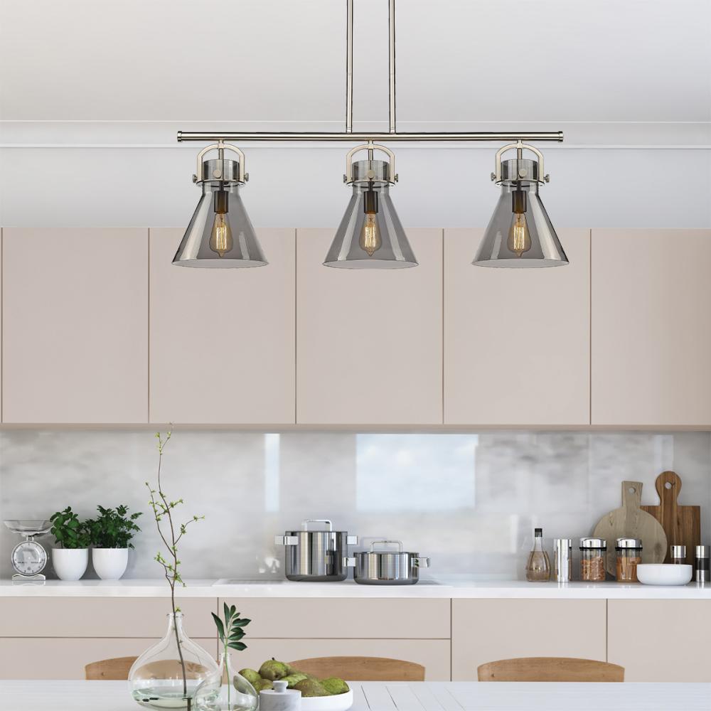 Newton Cone - 3 Light - 42 inch - Satin Nickel - Light Smoke Shade - Island Light