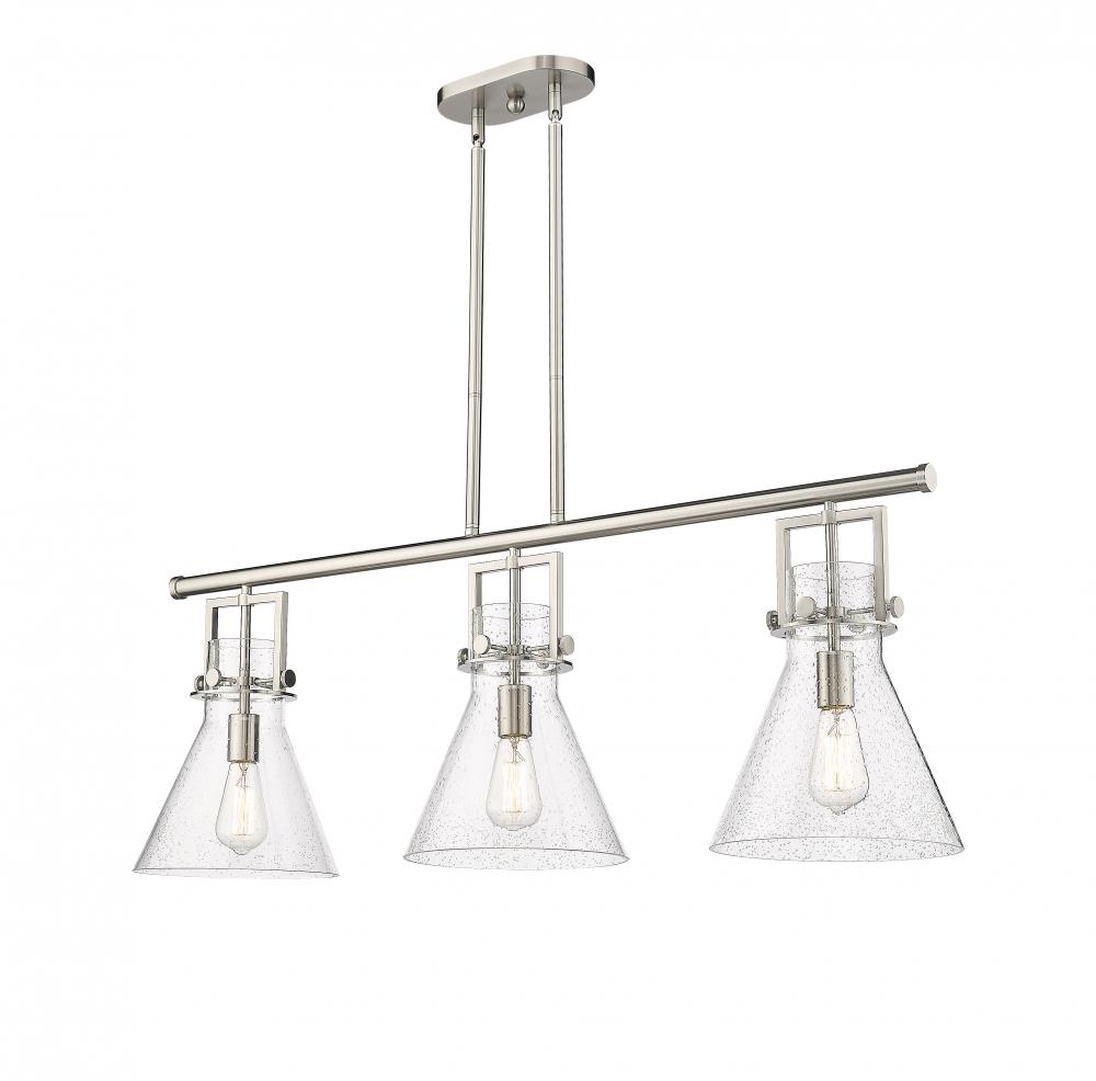 Newton Cone - 3 Light - 42 inch - Satin Nickel - Seedy Shade - Island Light