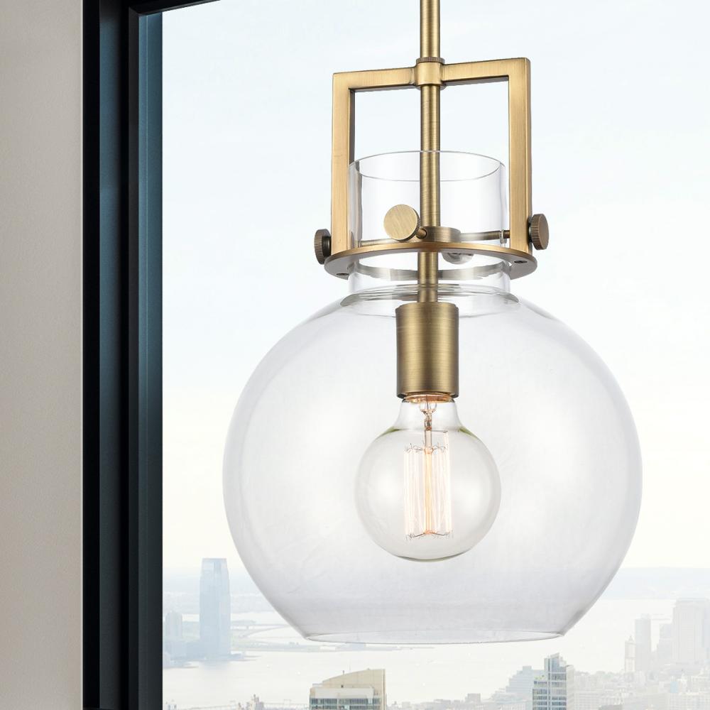 Newton Sphere - 1 Light - 10 inch - Brushed Brass - Clear Shade - Mini Pendant