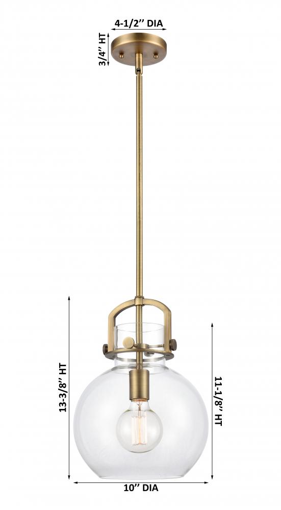 Newton Sphere - 1 Light - 10 inch - Brushed Brass - Clear Shade - Stem Hung - Mini Pendant