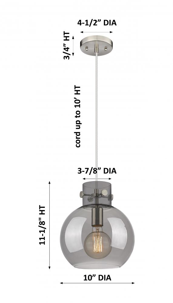 Newton Sphere - 1 Light - 10 inch - Brushed Satin Nickel - Light Smoke Shade - Cord hung - Mini Pendant