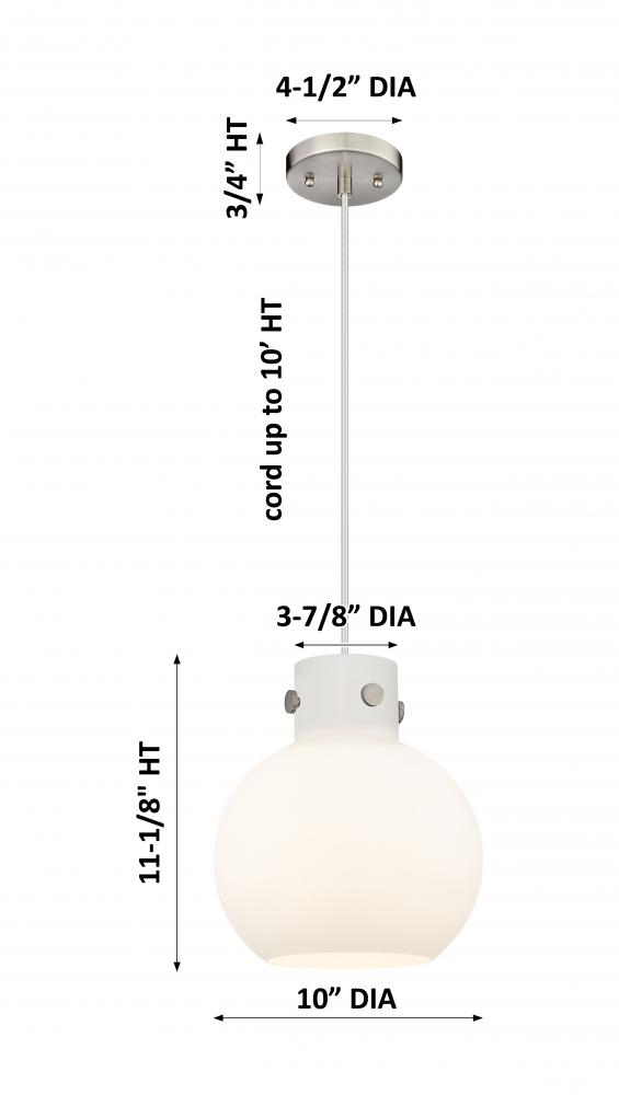 Newton Sphere - 1 Light - 10 inch - Brushed Satin Nickel - White Shade - Cord hung - Mini Pendant