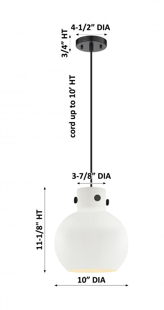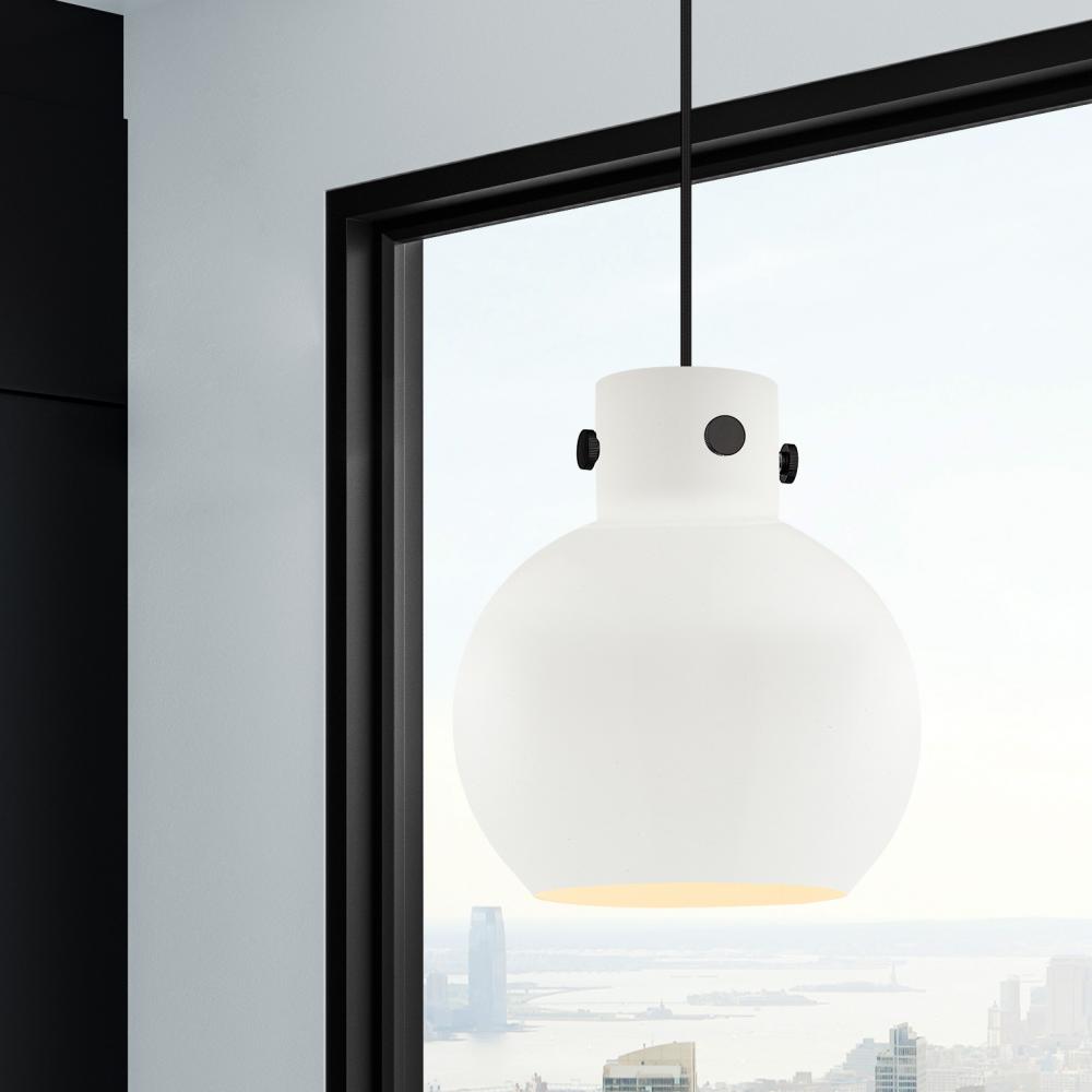 Newton Sphere - 1 Light - 10 inch - Matte Black - Matte White Shade - Cord hung - Pendant