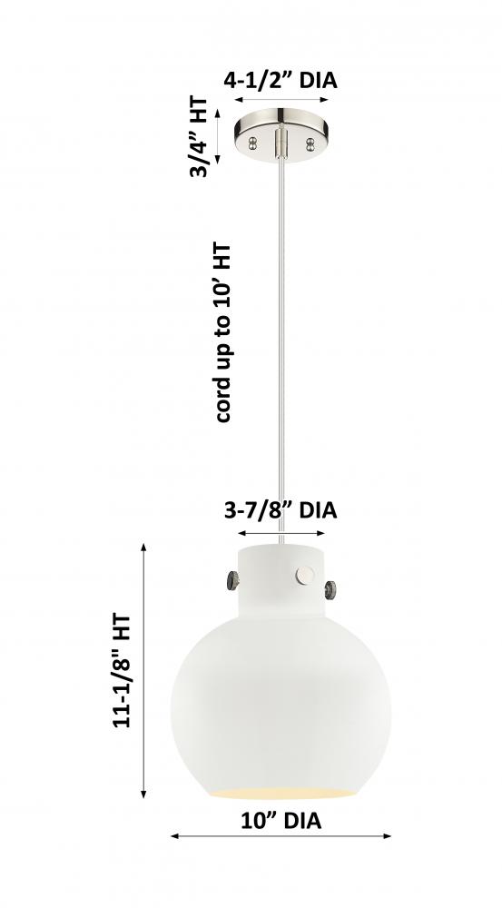 Newton Sphere - 1 Light - 10 inch - Polished Nickel - Matte White Shade - Cord hung - Pendant