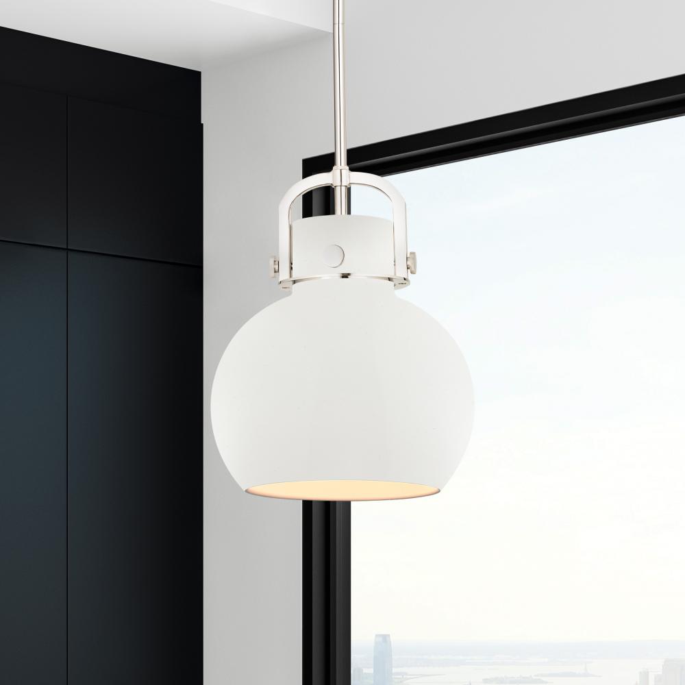 Newton Sphere - 1 Light - 10 inch - Polished Nickel - Matte White Shade - Mini Pendant