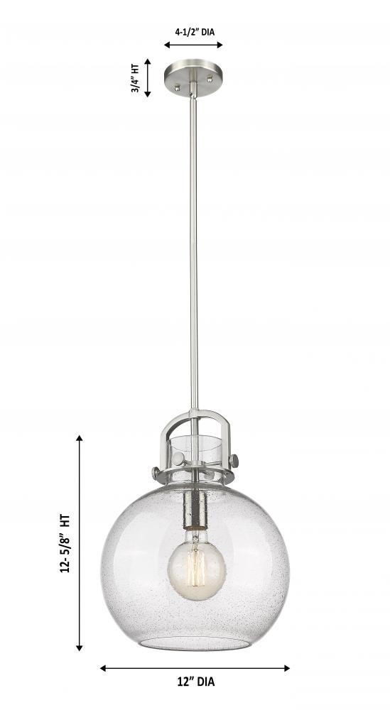 Newton Sphere - 1 Light - 12 inch - Brushed Satin Nickel - Seedy Shade - Stem Hung - Mini Pendant