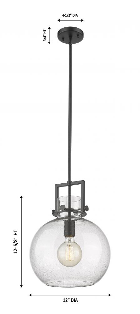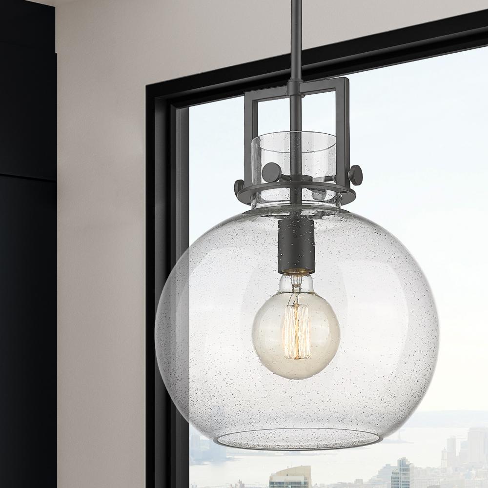 Newton Sphere - 1 Light - 12 inch - Matte Black - Seedy Shade - Mini Pendant